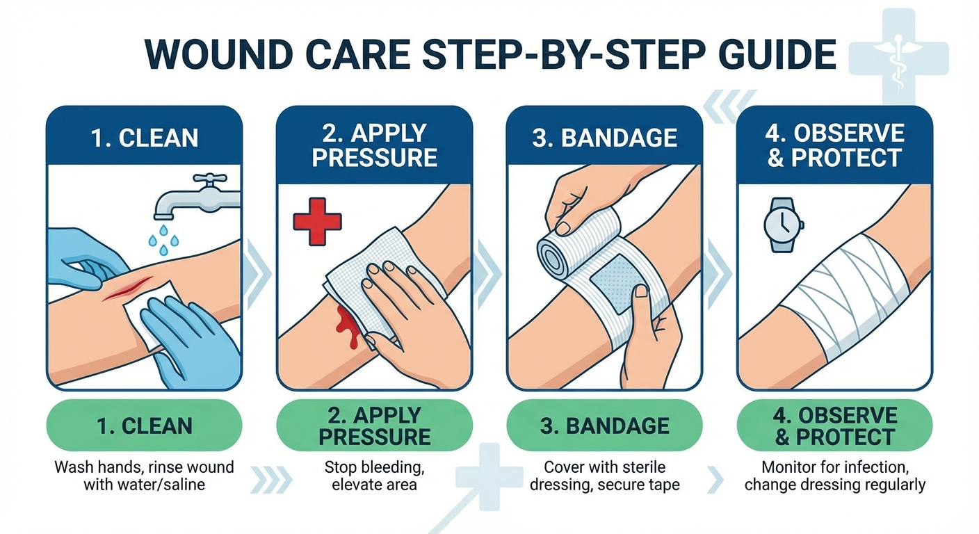 For animal bites and puncture wounds that carry a high infection risk, see our complete first aid for animal bites guide.